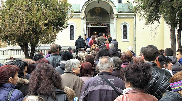 "Първо здраве, защото имаме болен човек, молим се да оздравее. Живи и здрави всички, всички." казва Василка Апостолова чакайки на опашката пред храма.