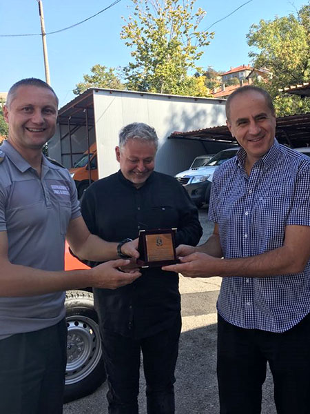 Комисар Георгиев прие с благодарност предоставения високопроходим автомобил, като връчи и на двамата Плакет за принос в партньорството с РДПБЗН – Кюстендил, по опазване живота, здравето и имуществото на гражданите.