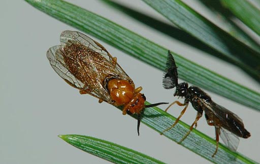 През последните месеци се наблюдава съхнене в иглолистните гори в териториални поделения на ЮЗДП в областите Благоевград и Кюстендил, причинено от ръждивата борова листна оса.