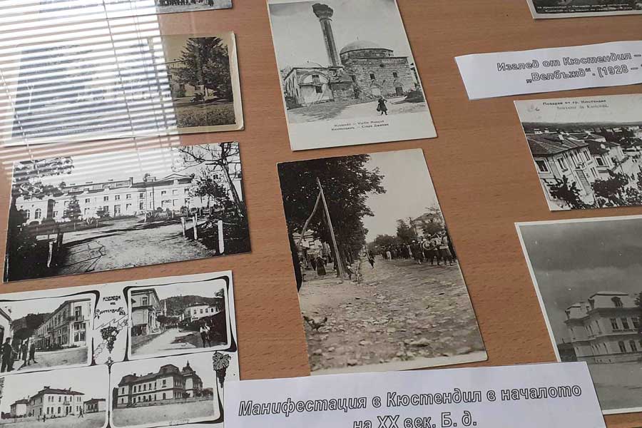 В изложбата са показани картички с изгледи от Кюстендил и региона.