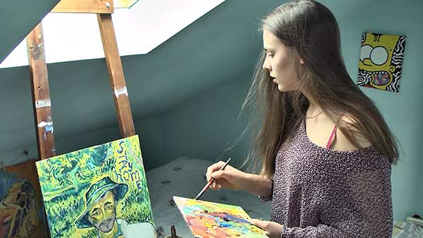 Дарина Дончева рисува репродукции на картини на Ван Гог. Тя харесва стила и енергията, която носят неговите картини.