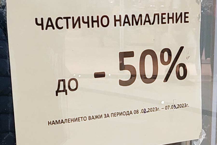 В един от случаите на входа на търговския обект е изписано само следното: „Частично намаление -20% -30% -50% -60%“. На друга витрина пък е поставена табела с надпис: „Частично намаление до -50%“, а посоченият период е коригиран на ръка, най-вероятно за да бъде изкуствено удължен.
